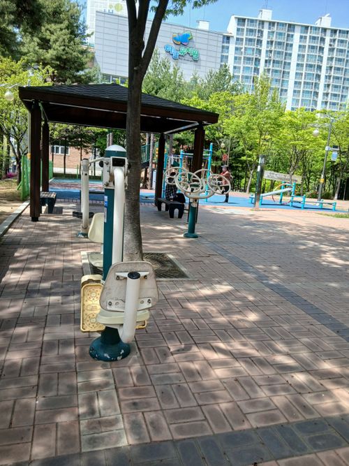 운동기구도있고 쉬기가좋아요장점은집에서가깝다는거예요 산책삼아걸어가서 운동기구도있어 몃가지 하다보면 땀도나고 은동이되는거같아요