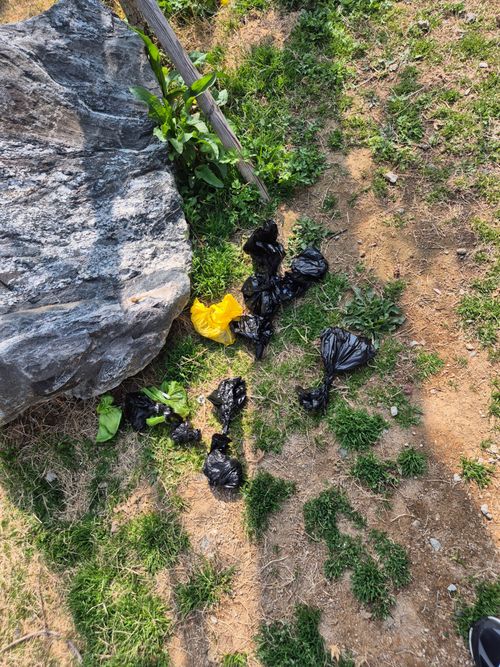 특히 제가 자주 다니는 길에는 수거한 배변 봉투 쌓여있는 구간이 있어요.