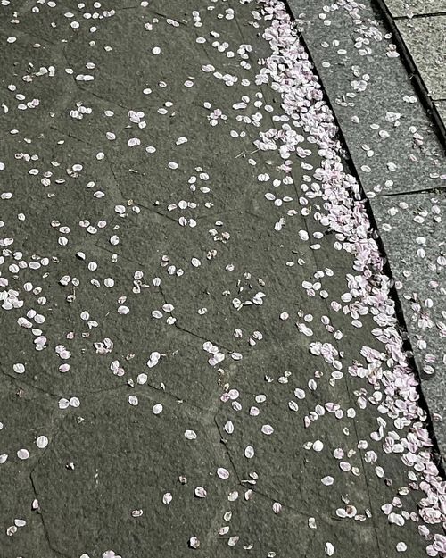 산책로 바닥에 흩뿌려진 벚꽃잎들을 담은 사진입니다. 아름답게 피어난 벚꽃도 좋지만, 바람에 날려 바닥에 쌓인 꽃잎들이 만들어낸 핑크빛 카펫 또한 봄의 또 다른 아름다움이죠. 이 사진을 보니 "아, 정말 봄이 깊었구나" 하는 생각이 들면서, 동시에 곧 지나갈 이 계절에 대한 아쉬움도 느껴집니다.
