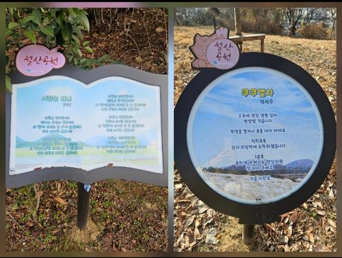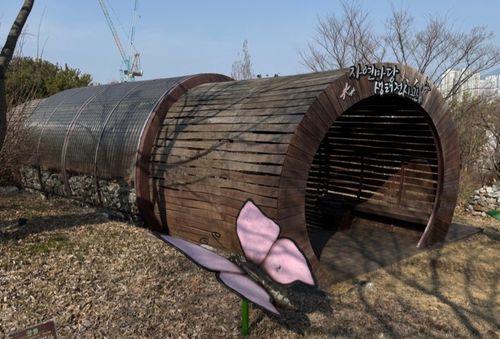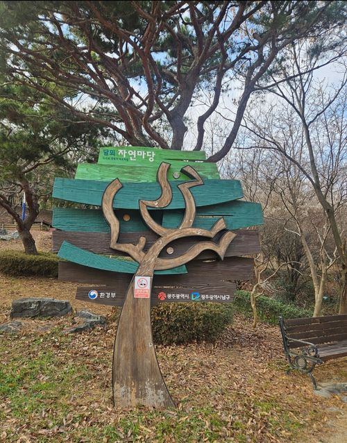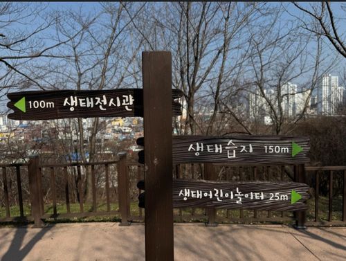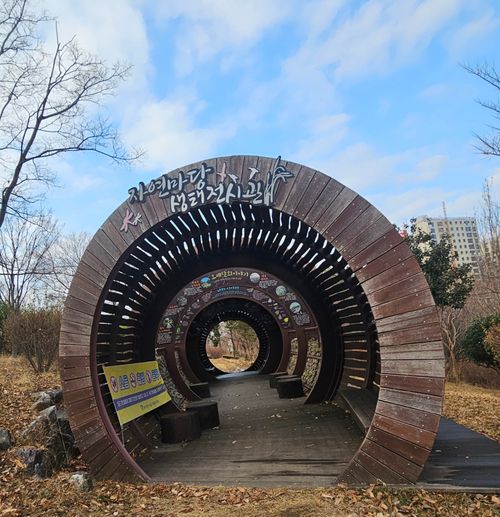 🌳 <달뫼 공원 자연마당의 입구>로 들어오면 자연을 담은 마당 이름처럼 이름표도 나무로 새겨져 자연과 하나로 어우러져 있습니다.