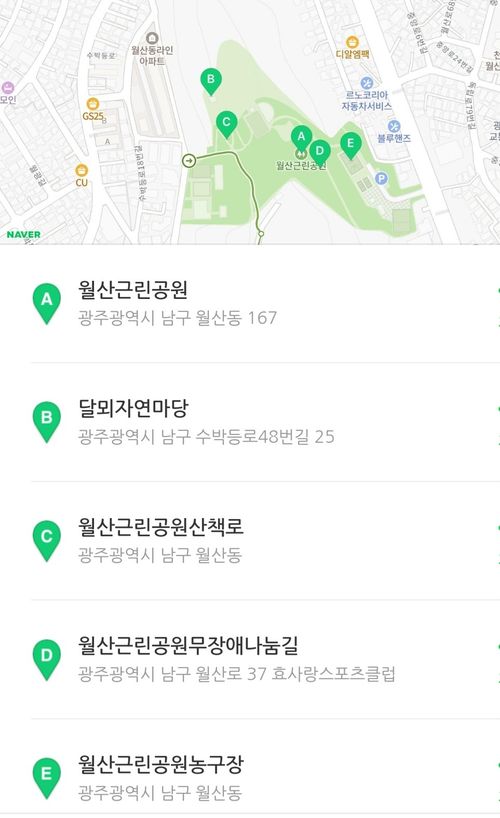 ✅️월산근린공원의 위치 ㅡ 광주 남구 백운동~ 월산동167번지 백운지구대 근처