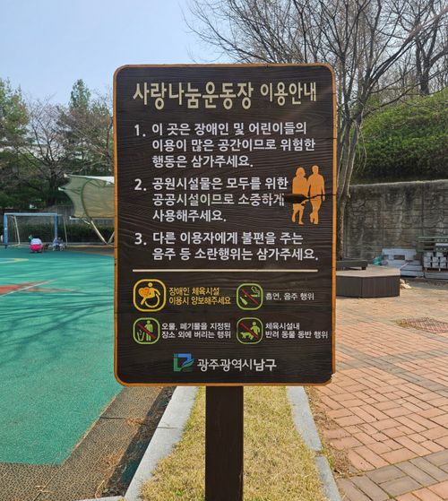 🧑🦽 ♿️ 👨👩👦 사랑나눔운동장은 장애인분들이나 어린이들이 안전하게 이용할수 있는 운동장으로 조성하여 놓았습니다.