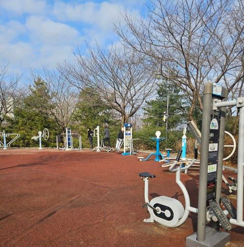 🏃♀️따뜻한 햇빛을 받으면서 다양한 연령대가함께 운동할 수 있는 기구들을 종류별로 설치되어 있어 새벽부터 저녁시간대 가족들과 함께 올라와 즐겁게 자연 속에서 호흡하면서 운동도 할 수 있습니다.